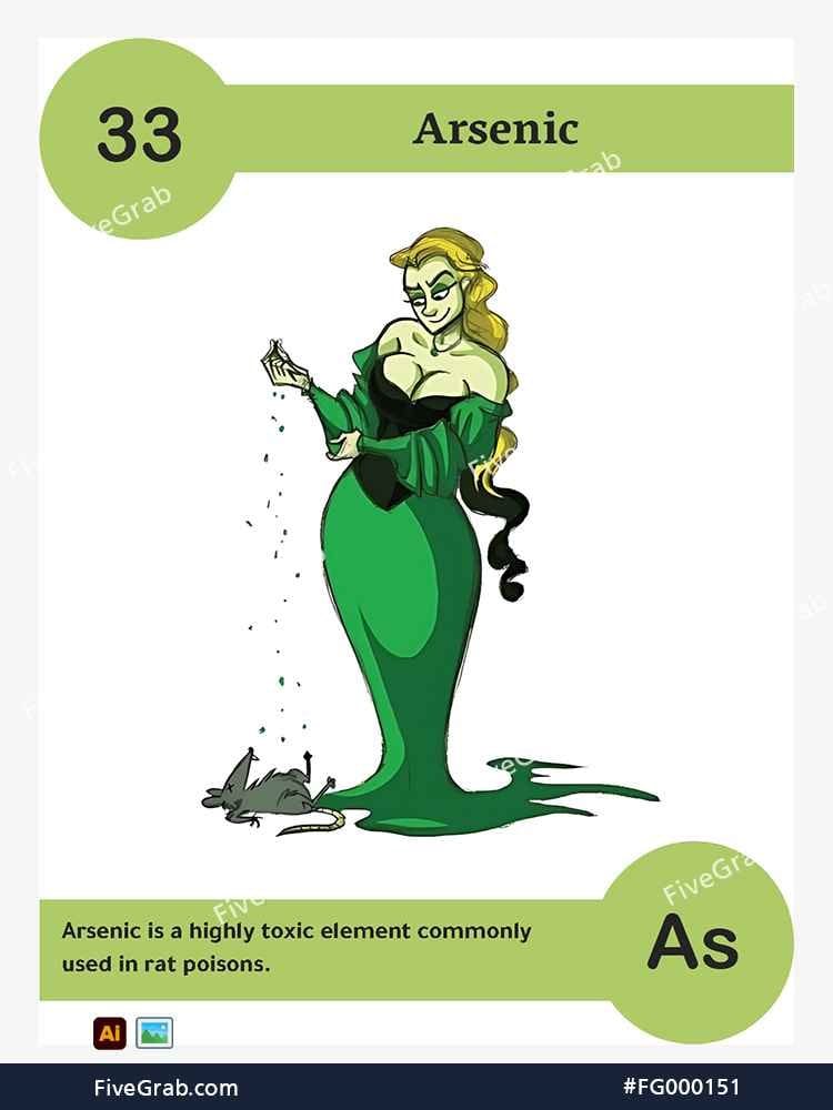 Discover the perfect blend of art and science with our premium vector illustration of Arsenic (As). This meticulously crafted digital asset is part of the exclusive “FiveGrab Chemical Collection,” designed to transform complex data into stories.