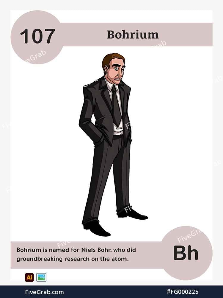 Discover the perfect blend of art and science with our premium vector illustration of Bohrium (Bh). This meticulously crafted digital asset is part of the exclusive “FiveGrab Chemical Collection,” designed to transform complex data into stories.