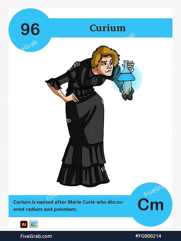 Discover the perfect blend of art and science with our premium vector illustration of Curium (Cm). This meticulously crafted digital asset is part of the exclusive “FiveGrab Chemical Collection,” designed to transform complex data into stories.