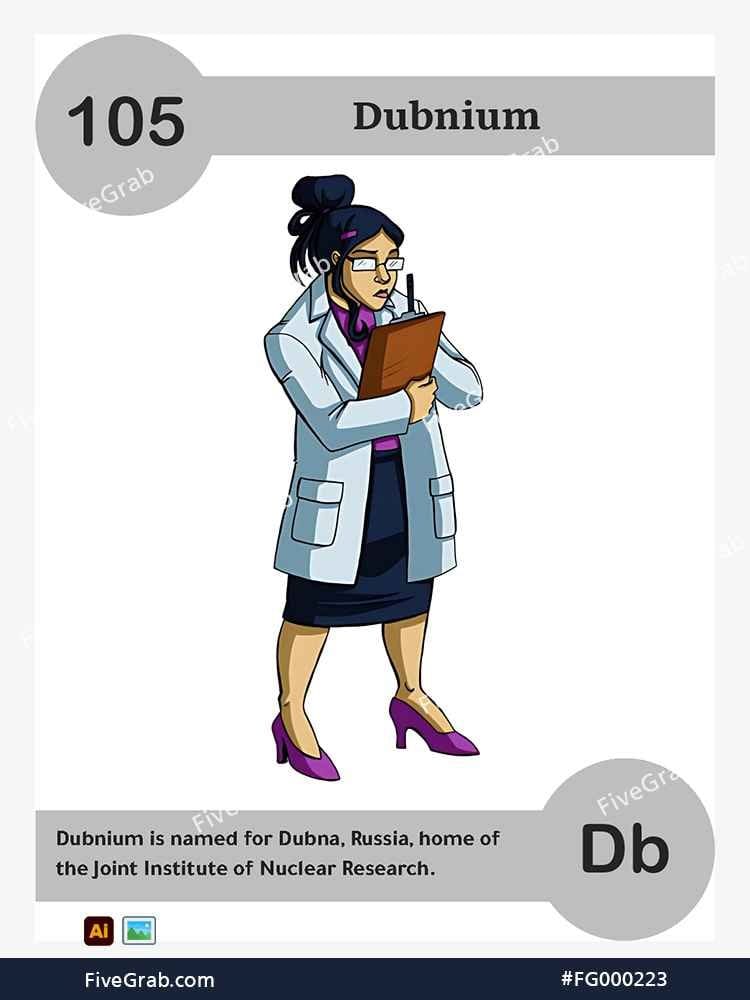 Discover the perfect blend of art and science with our premium vector illustration of Dubnium (Db). This meticulously crafted digital asset is part of the exclusive “FiveGrab Chemical Collection,” designed to transform complex data into stories.