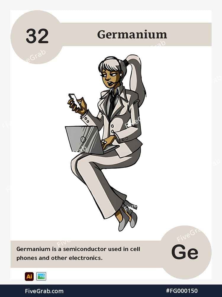 Discover the perfect blend of art and science with our premium vector illustration of Germanium (Ge). This meticulously crafted digital asset is part of the exclusive “FiveGrab Chemical Collection,” designed to transform complex data into stories.