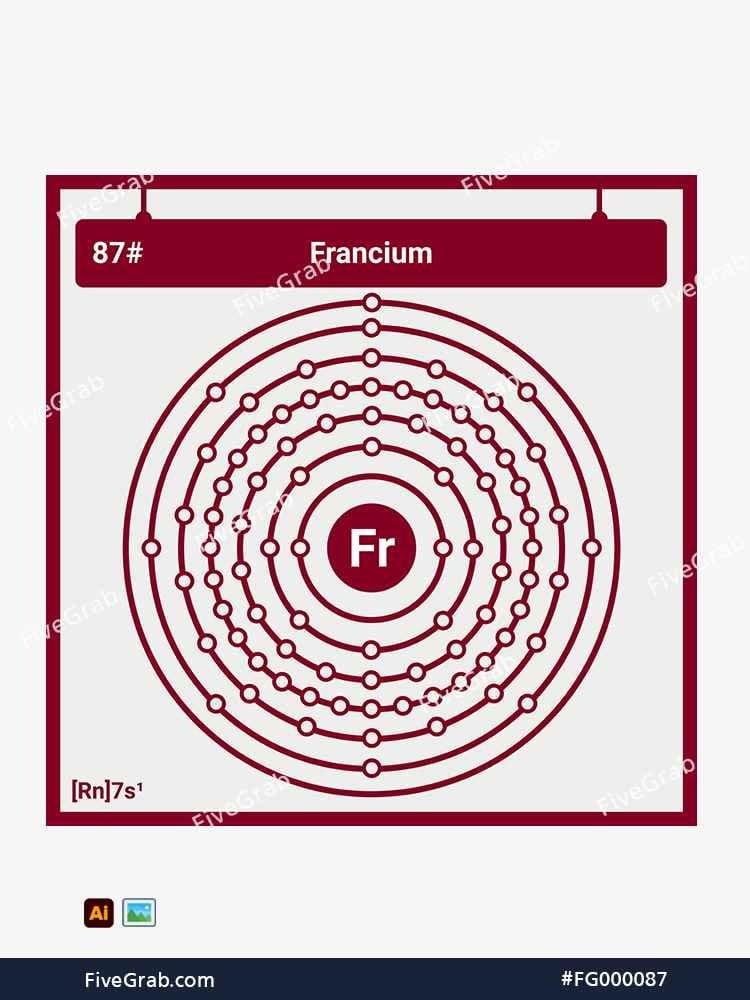 Power your tech-driven or scientific projects with this digital asset of Francium (Fr), a fundamental building block of modern science. This visual tool blends rigorous scientific accuracy with sleek, modern aesthetics.
