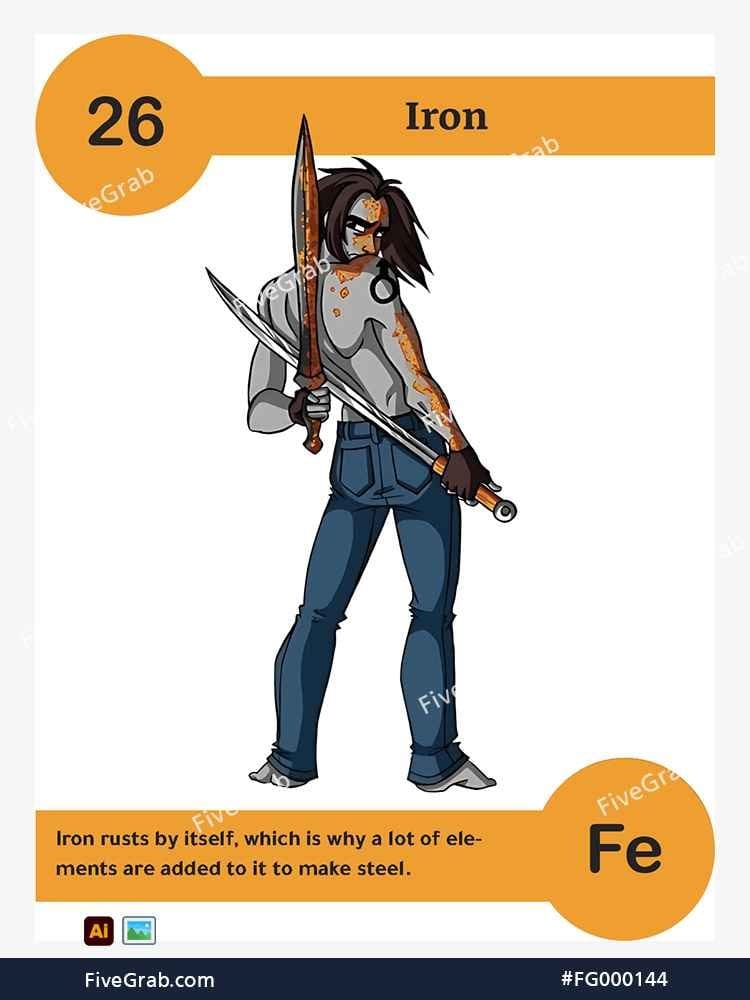 Discover the perfect blend of art and science with our premium vector illustration of Iron (Fe). This meticulously crafted digital asset is part of the exclusive “FiveGrab Chemical Collection,” designed to transform complex data into stories.