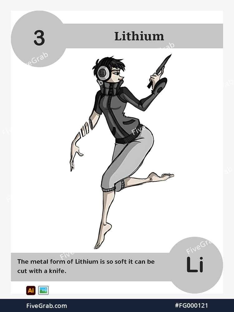 Discover the perfect blend of art and science with our premium vector illustration of Lithium (Li). This meticulously crafted digital asset is part of the exclusive “FiveGrab Chemical Collection,” designed to transform complex data into stories.