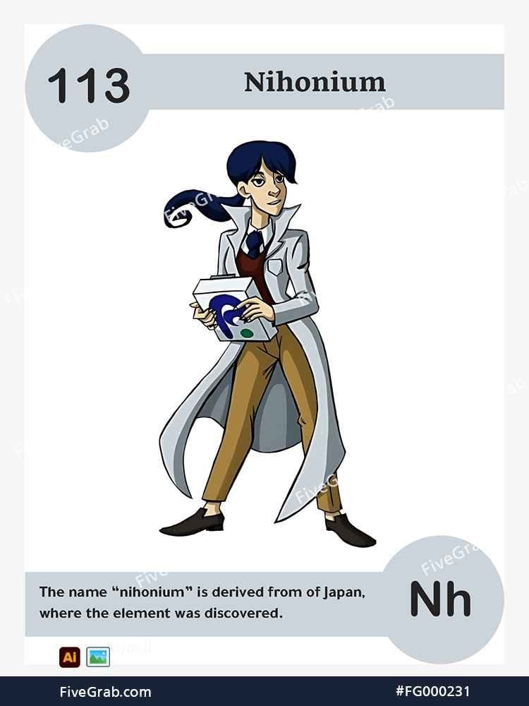 Discover the perfect blend of art and science with our premium vector illustration of Nihonium (Nh). This meticulously crafted digital asset is part of the exclusive “FiveGrab Chemical Collection,” designed to transform complex data into stories.