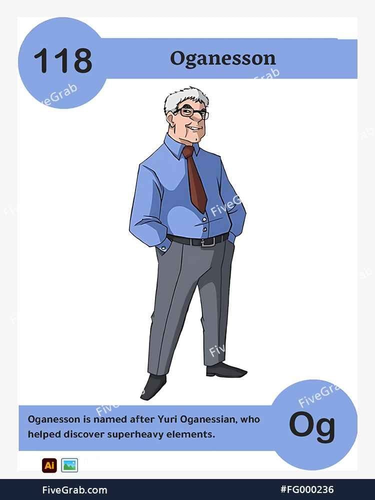 Discover the perfect blend of art and science with our premium vector illustration of Oganesson (Og). This meticulously crafted digital asset is part of the exclusive “FiveGrab Chemical Collection,” designed to transform complex data into stories.
