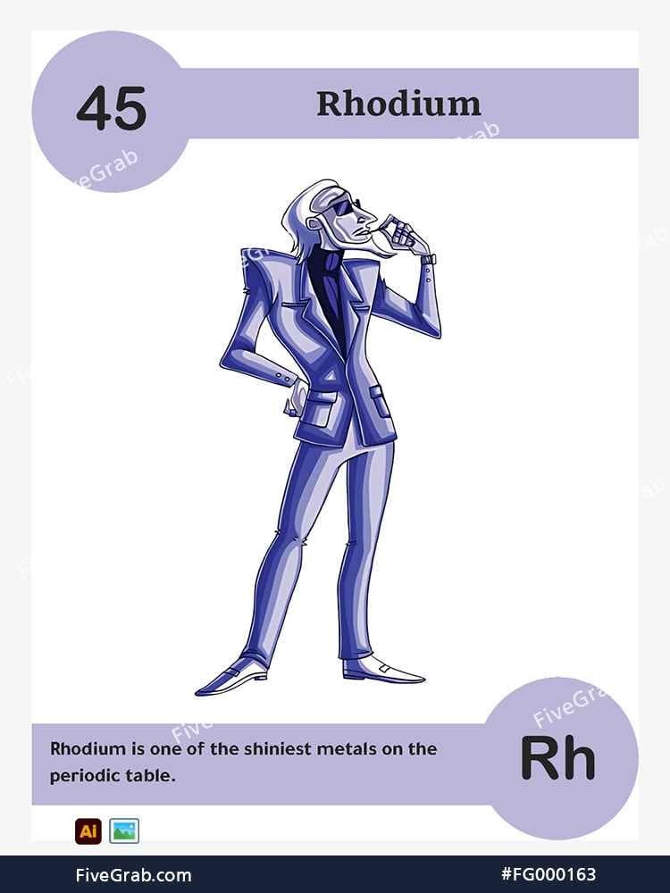 Discover the perfect blend of art and science with our premium vector illustration of Rhodium (Rh). This meticulously crafted digital asset is part of the exclusive “FiveGrab Chemical Collection,” designed to transform complex data into stories.