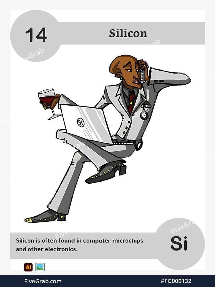 Discover the perfect blend of art and science with our premium vector illustration of Silicon (Si). This meticulously crafted digital asset is part of the exclusive “FiveGrab Chemical Collection,” designed to transform complex data into stories.