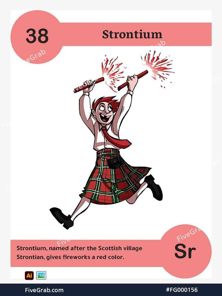 Discover the perfect blend of art and science with our premium vector illustration of Strontium (Sr). This meticulously crafted digital asset is part of the exclusive “FiveGrab Chemical Collection,” designed to transform complex data into stories.