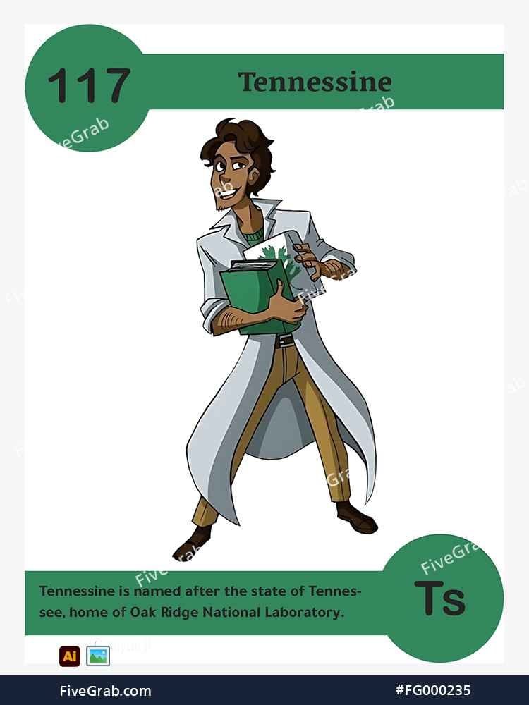 Discover the perfect blend of art and science with our premium vector illustration of Tennessine (Ts). This meticulously crafted digital asset is part of the exclusive “FiveGrab Chemical Collection,” designed to transform complex data into stories.
