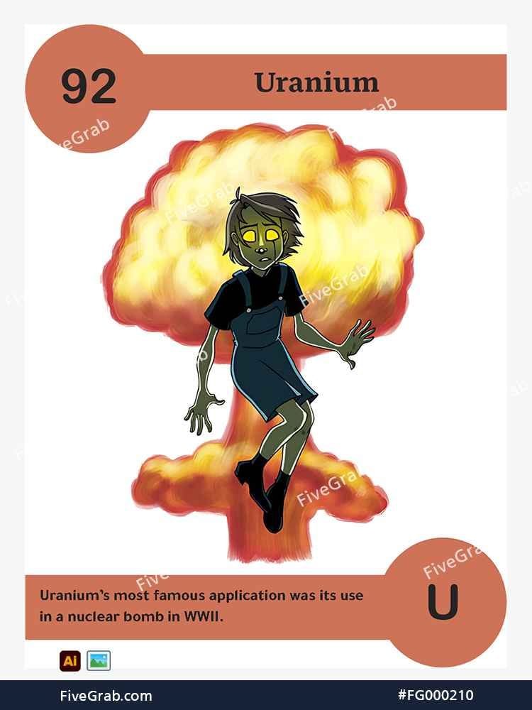 Discover the perfect blend of art and science with our premium vector illustration of Uranium (U). This meticulously crafted digital asset is part of the exclusive “FiveGrab Chemical Collection,” designed to transform complex data into stories.